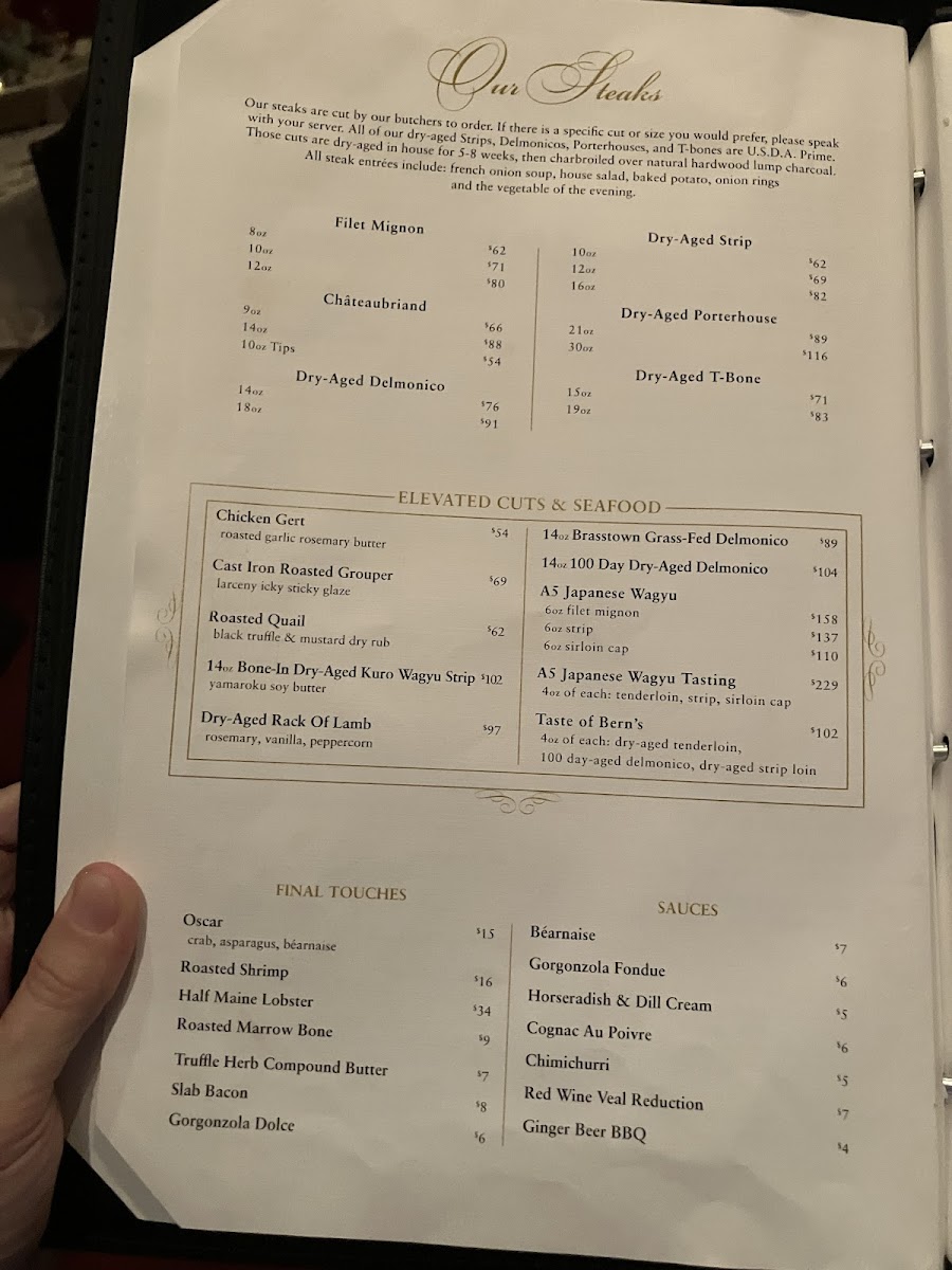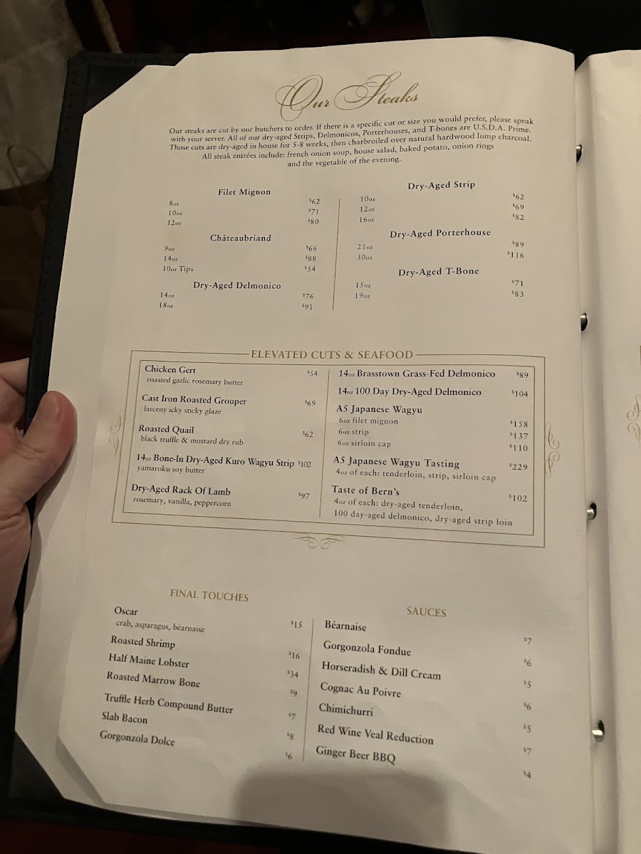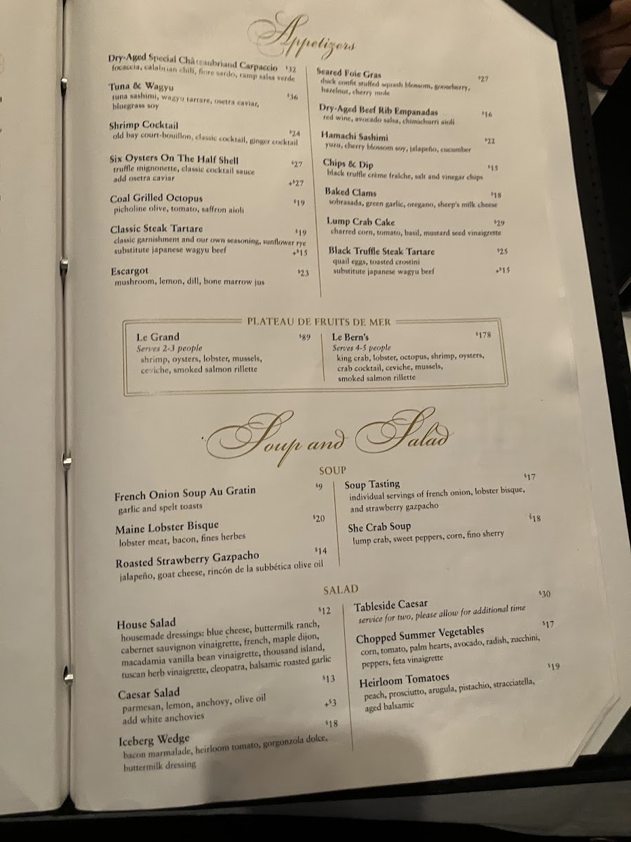 The menu at Bern’s Steak House reflects the classic elegance of a traditional steakhouse while offering a carefully curated selection that feels both refined and approachable. Guests can expect a balance of hearty, expertly prepared prime steaks alongside thoughtfully chosen starters and sides that complement the main courses without overwhelming them.